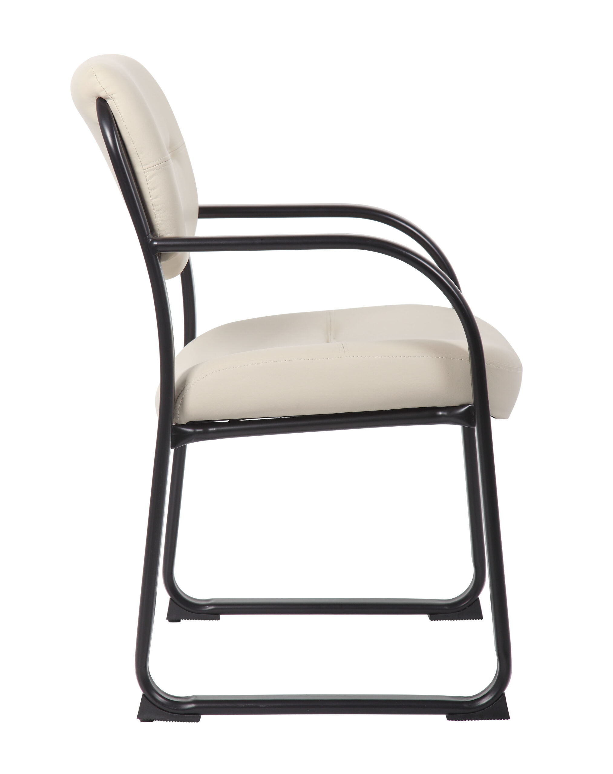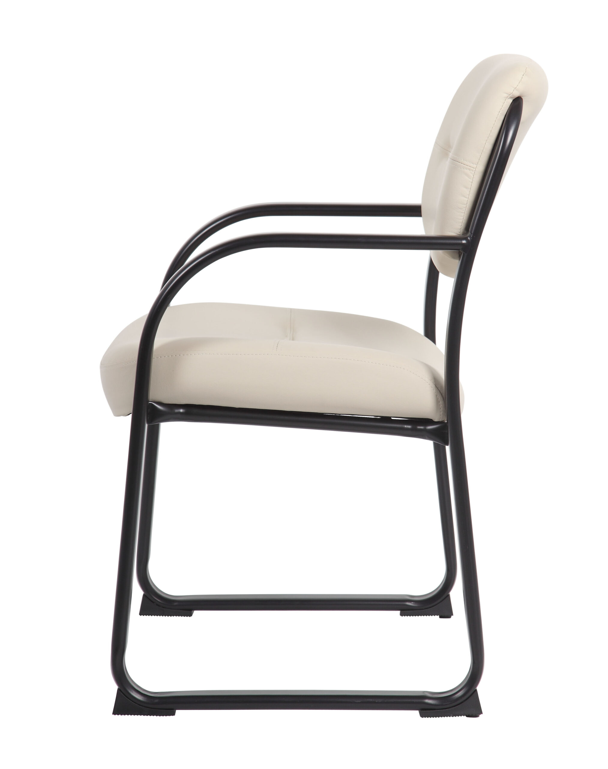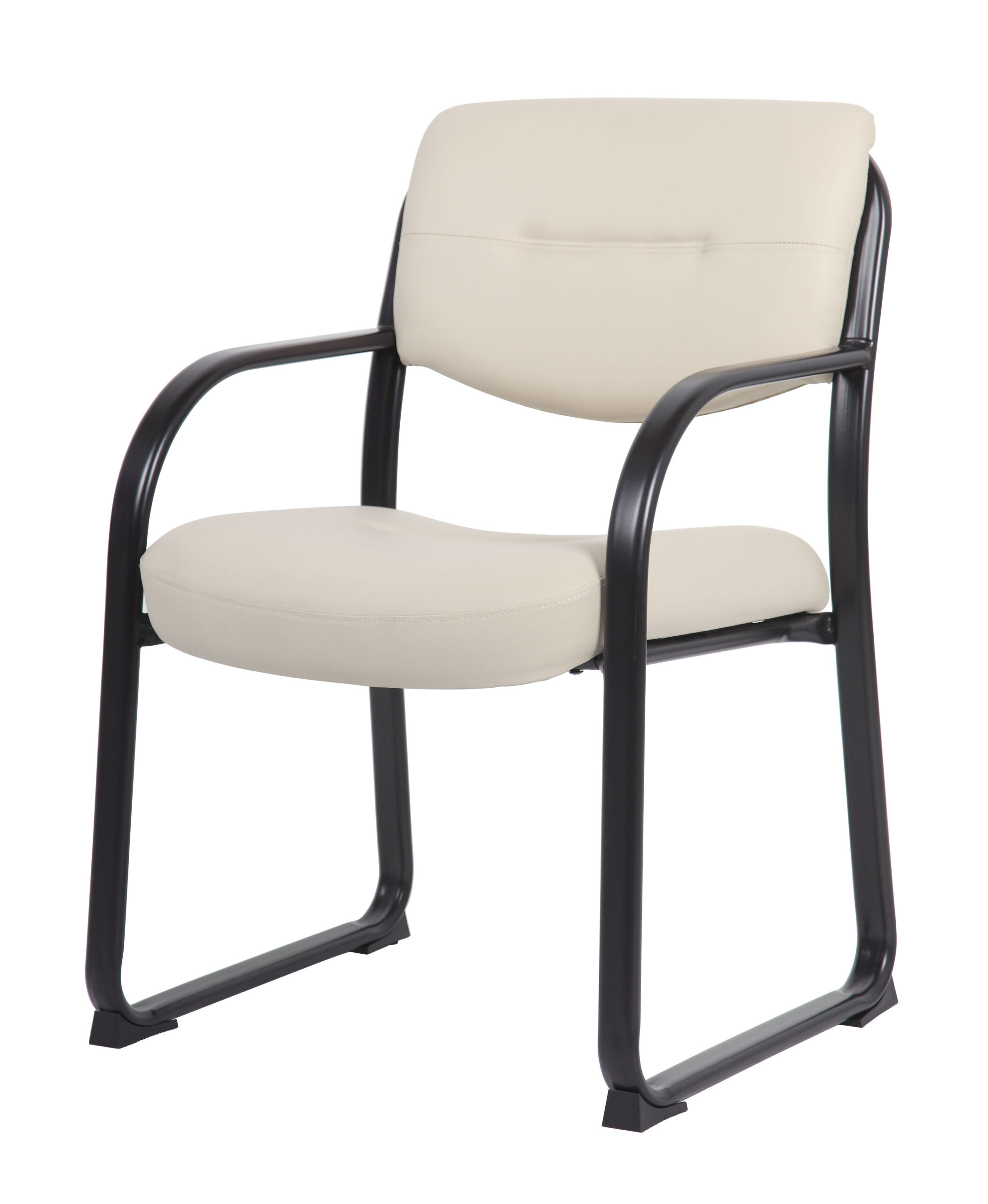 Discover the perfect blend of elegance and comfort with our LeatherPlus guest chair, upholstered in timeless beige. Upholstered with a luxurious mix of leather and polyurethane, this chair promises both durability and indulgent comfort. Its sleek, polished tubular steel frame with a black powder-coated finish adds a modern touch, while the contoured seat offers exceptional lumbar support. The gracefully curved arms are designed to effortlessly slide past the front edges when the chair is pulled up to the table, and the thick, contoured cushions provide extra comfort and support. Ideal for enhancing any room, this chair combines style and functionality with ease.